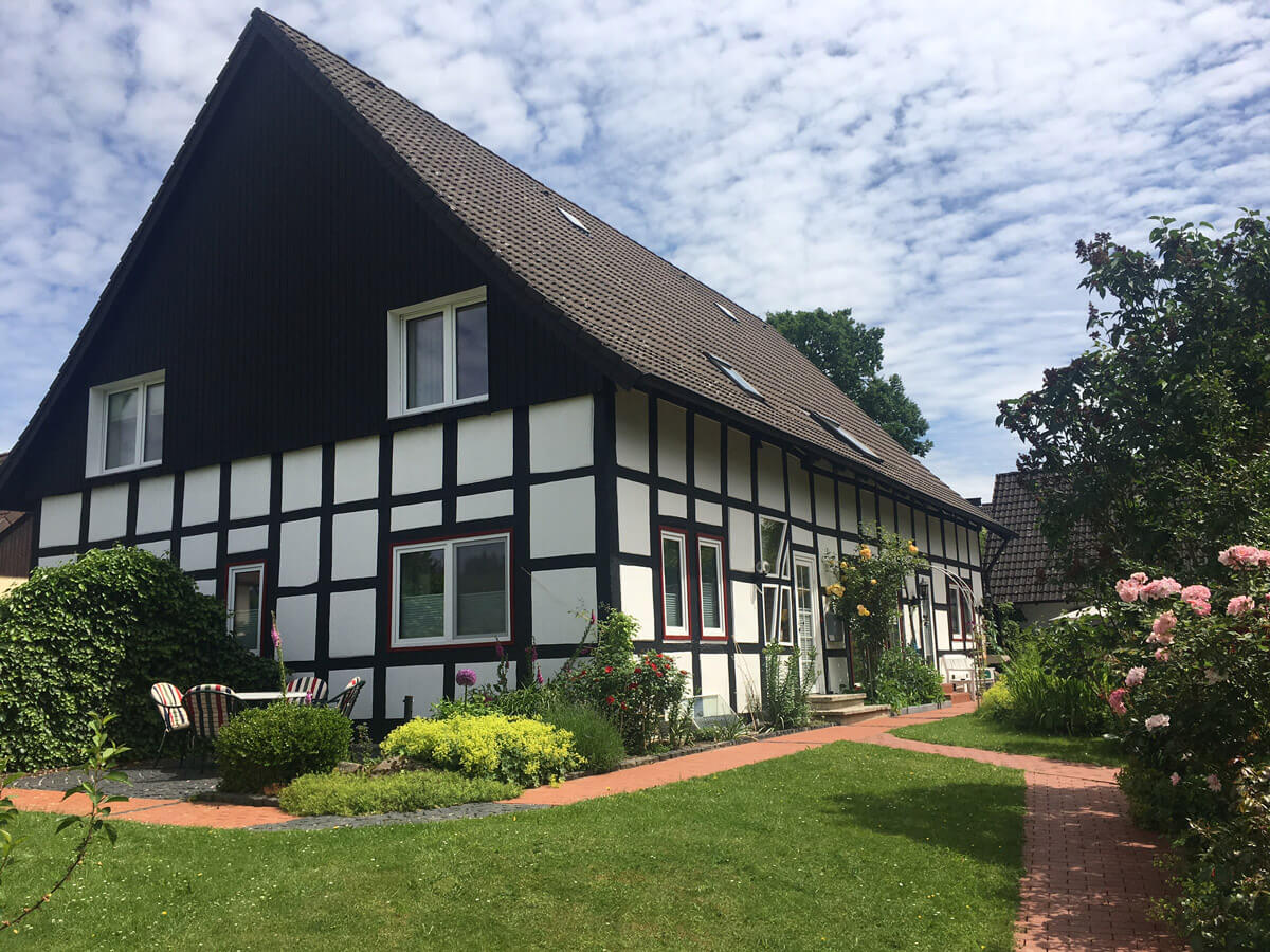 Die Dorfperle ist ein 1839 erbautes Fachwerkhaus, das mitten im Grünen auf einem 4.000 Quadratmater großen Grundstück steht. Mit einem stolzen Hahn und seinen Hühnern, vier Ziegen und einer Teichanlage empfangen wir Sie hier im schönen Bad Salzufler Ortsteil Wüsten.